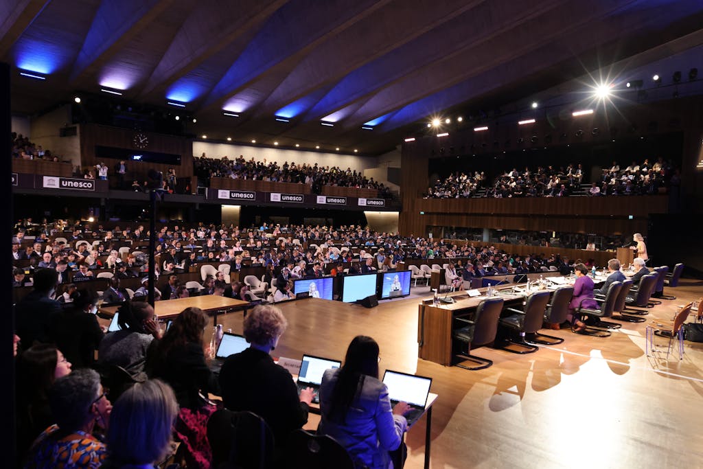 Negotiations commence at the UN Environment Programme’s second Intergovernmental Negotiating Committee meeting on plastic pollution at UNESCO headquarters in Paris. Photo: Twitter / Inger Andersen.